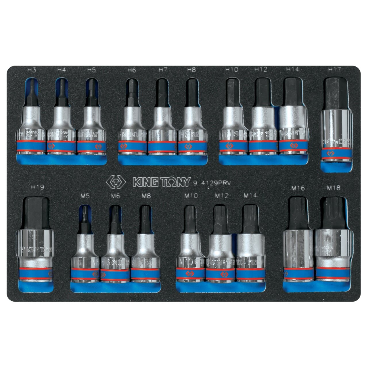 King Tony Набор Торцевых Насадок Hex И Spline, Ложемент, 19 Предметов KING TONY арт. 94129PRV