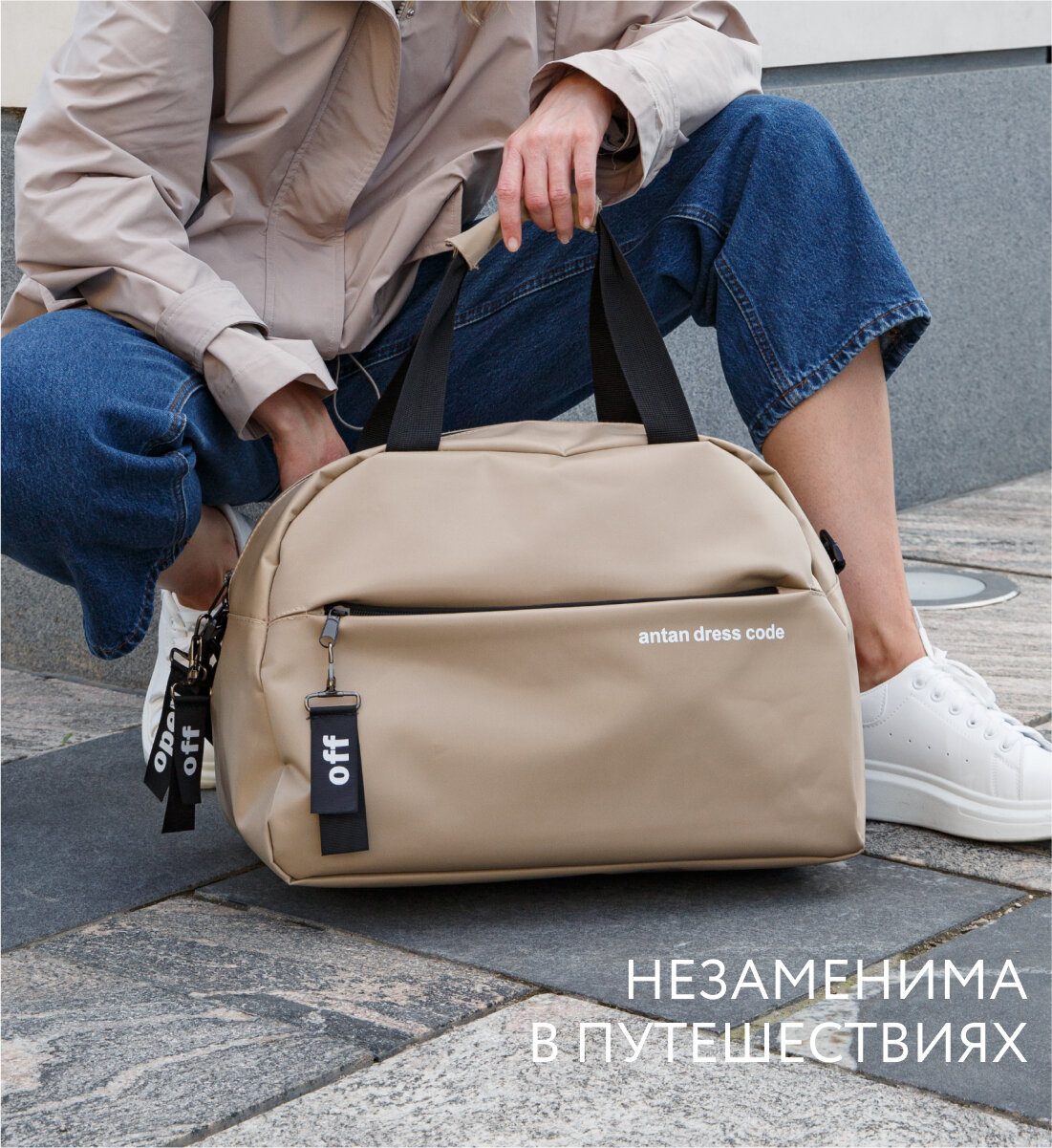 СохранитьСумка спортивная женская, мужская, дорожная ANTAN 2-168 Сатин, бежевая интересное:
