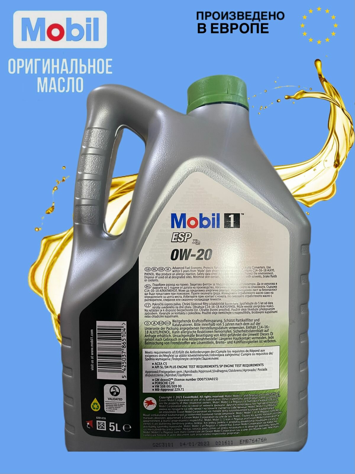 Синтетическое моторное масло MOBIL 1 ESP X2 0W-20, 1 л
