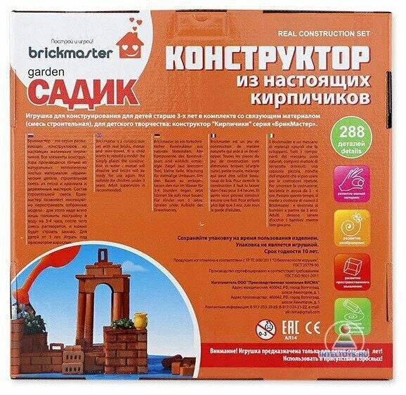 Конструктор Построй и играй! Briсkmaster "САДИК" из настоящих кирпичиков (288 деталей) 102пл-no