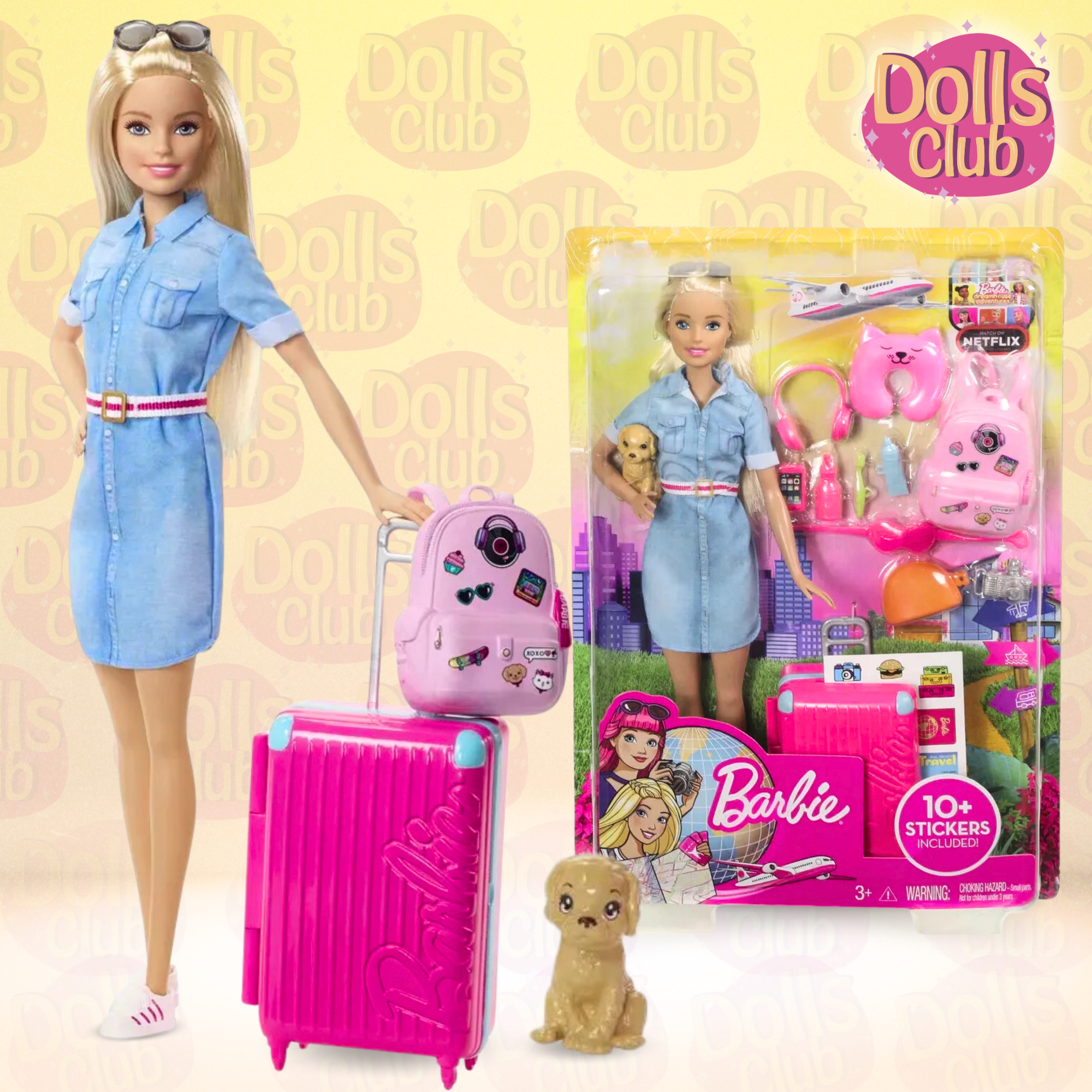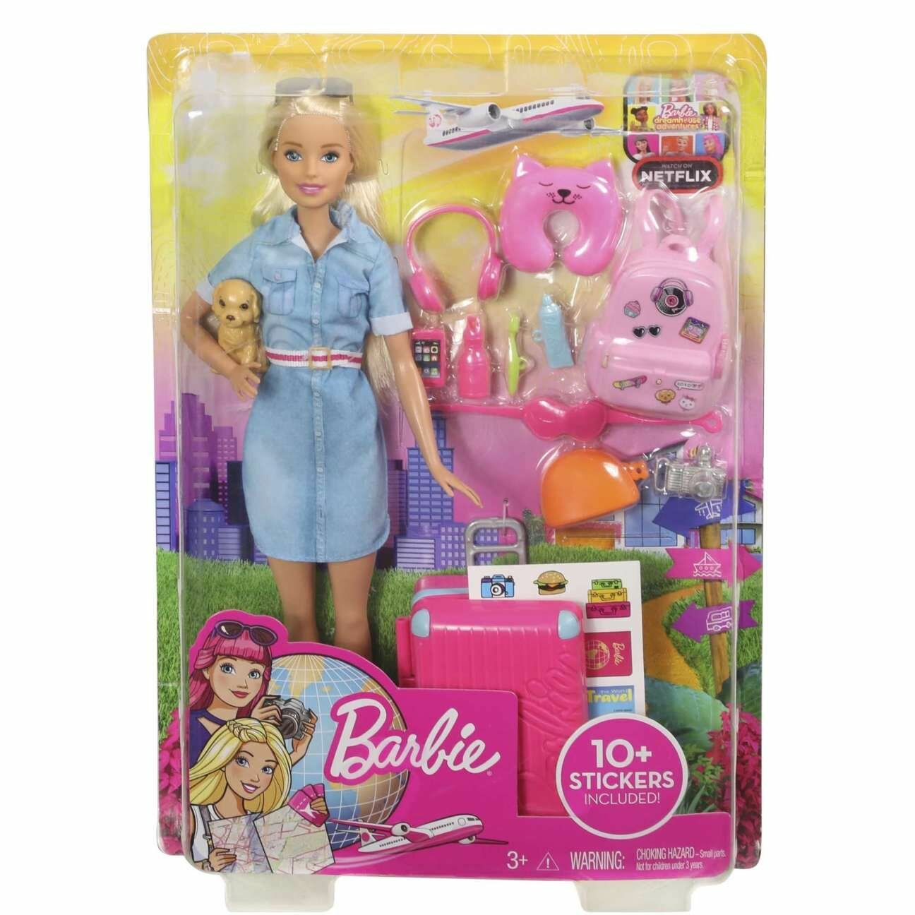 | Комплектация | кукла,фигурка щенка, аксессуары( чемодан, наклейки, фотоаппарат, рюкзак, бутылочка с водой, зубная паста, зубная щетка, косметичка, наушники, очки от солнца, телефон, подушка для шеи, маска) |