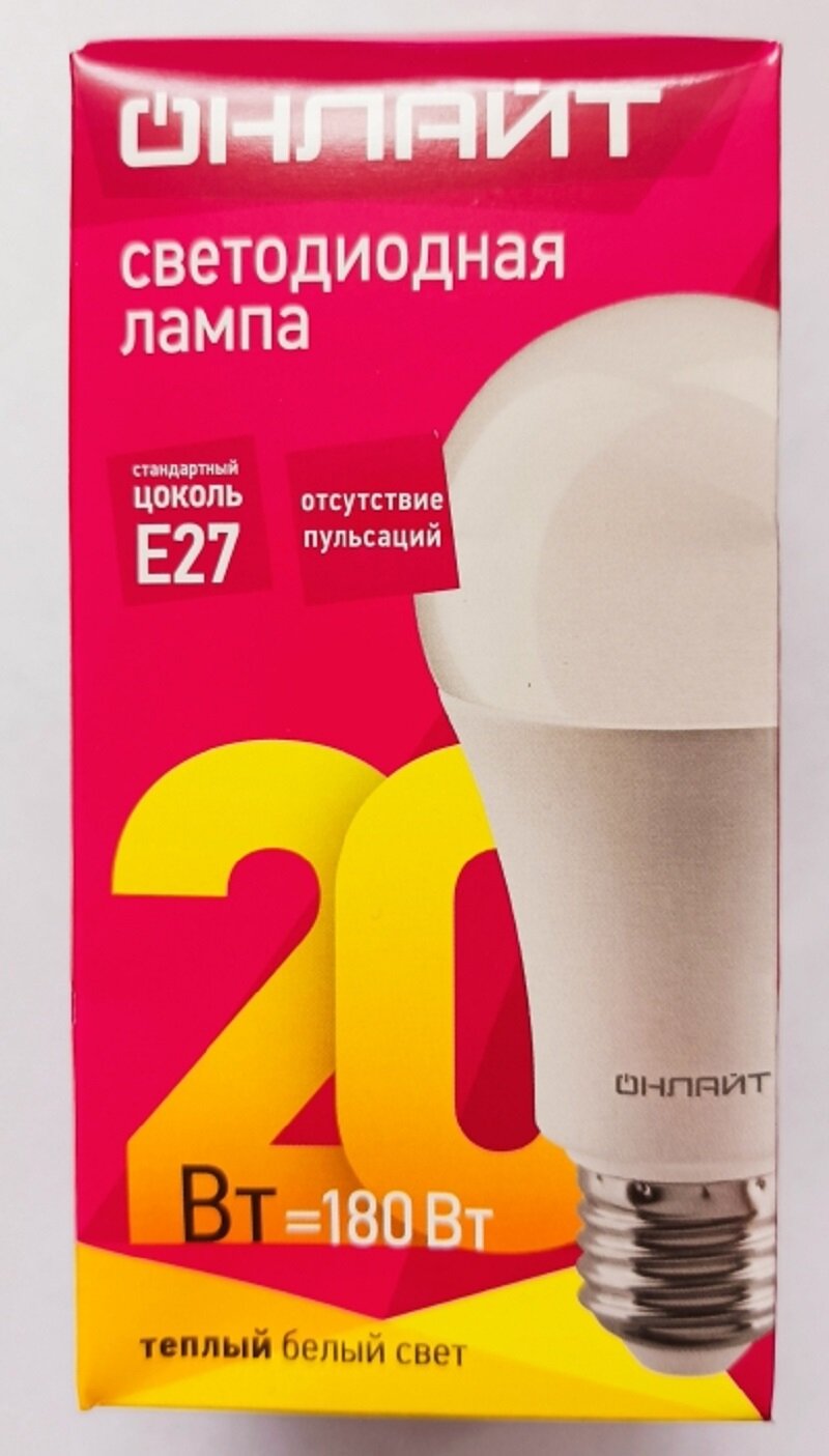 Лампа светодиодная онлайт 61157, E27, A60, 20 Вт, 2700 К