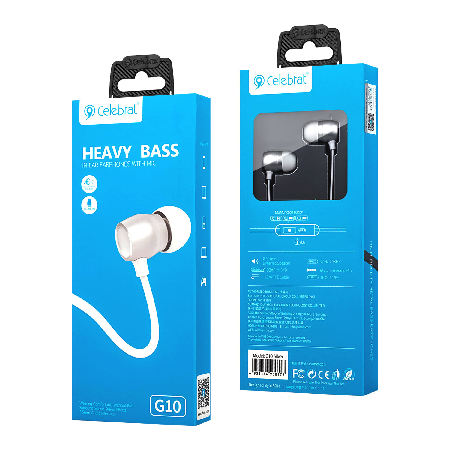 Гарнитура внутриканальная Celebrat G10, серебристый