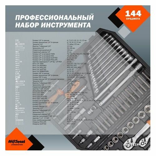 AVSTEEL AV011144 Набор инструмента AV Steel 144 предм. 14,38,12 профессион.