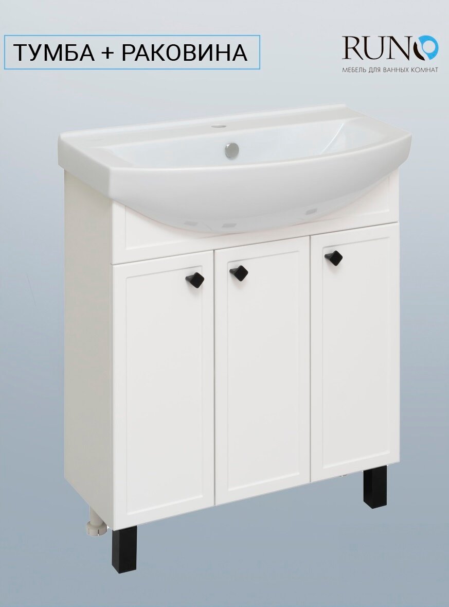 Тумба с раковиной / Runo / Римини 75 / белый / с умывальником Best 75