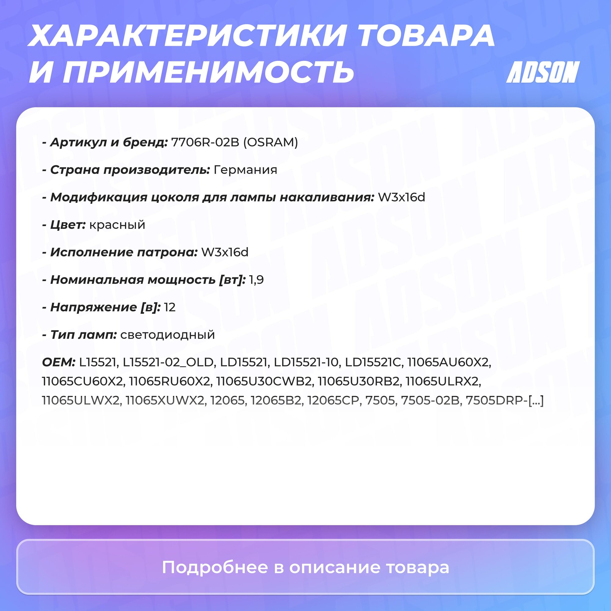 OSRAM 7706R02B Снят с производства Комплект ламп W21W 12V 1,4W W3X16D LEDRIVING standard/W21W/красный 2шт.(1к-т)