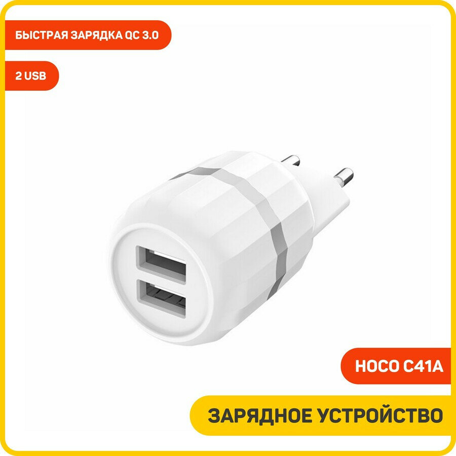 Сетевое зарядное устройство (СЗУ) Hoco C41A (2 USB) + кабель MicroUSB, 2.4 А, белый