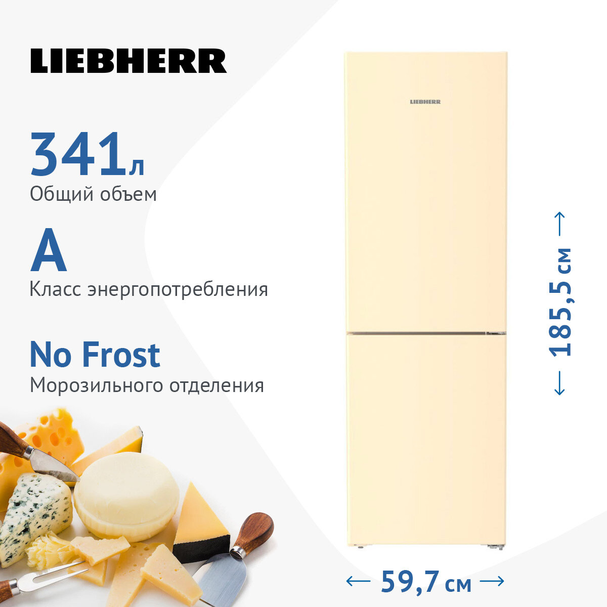 Холодильники LIEBHERR/ Pure, EasyFresh, МК NoFrost, 3 контейнера МК, в. 185,5 см, ш. 60 см, класс ЭЭ A, внутренние ручки, бе