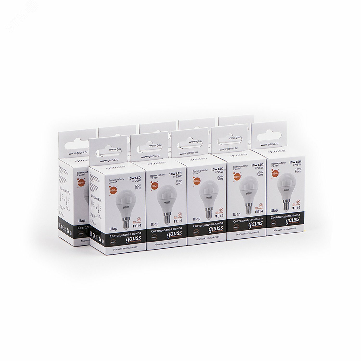 (5 шт)Лампа Gauss Elementary Шар 10W 710lm 3000K Е14 LED 1/10/100
