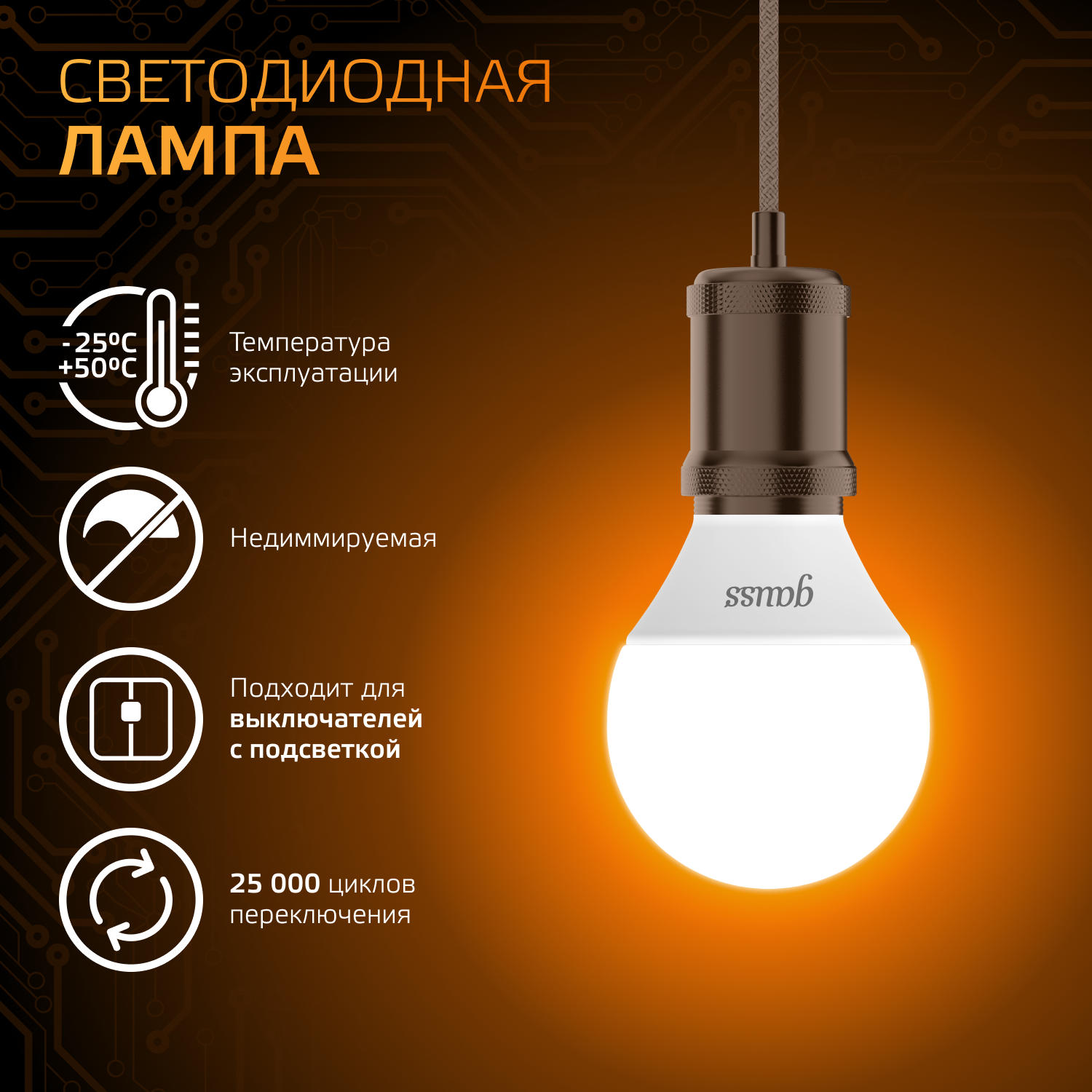 Лампочка светодиодная Е14 Шар 6.5W теплый свет 3000К упаковка 10 шт. Gauss Black