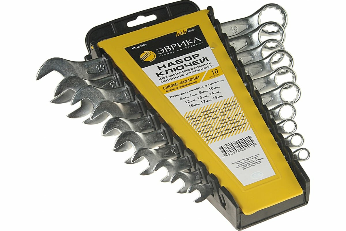 Набор ключей комбинированных 6-19мм 10 предметов в холдере сатинированные, эврика ER31100 (1 шт.)