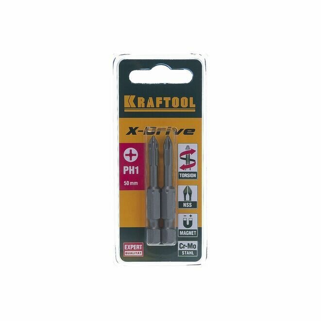 Биты ″X-DRIVE″, PH1 x 50 мм, торсионные кованые, обточенные, KRAFTOOL ,2 шт. (26121-1-50-2)