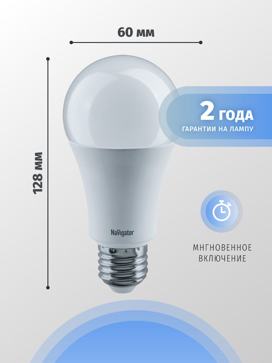 (25 шт.) Светодиодная лампочка Navigator A60 15Вт 230В 6500K E27 размер 60x128