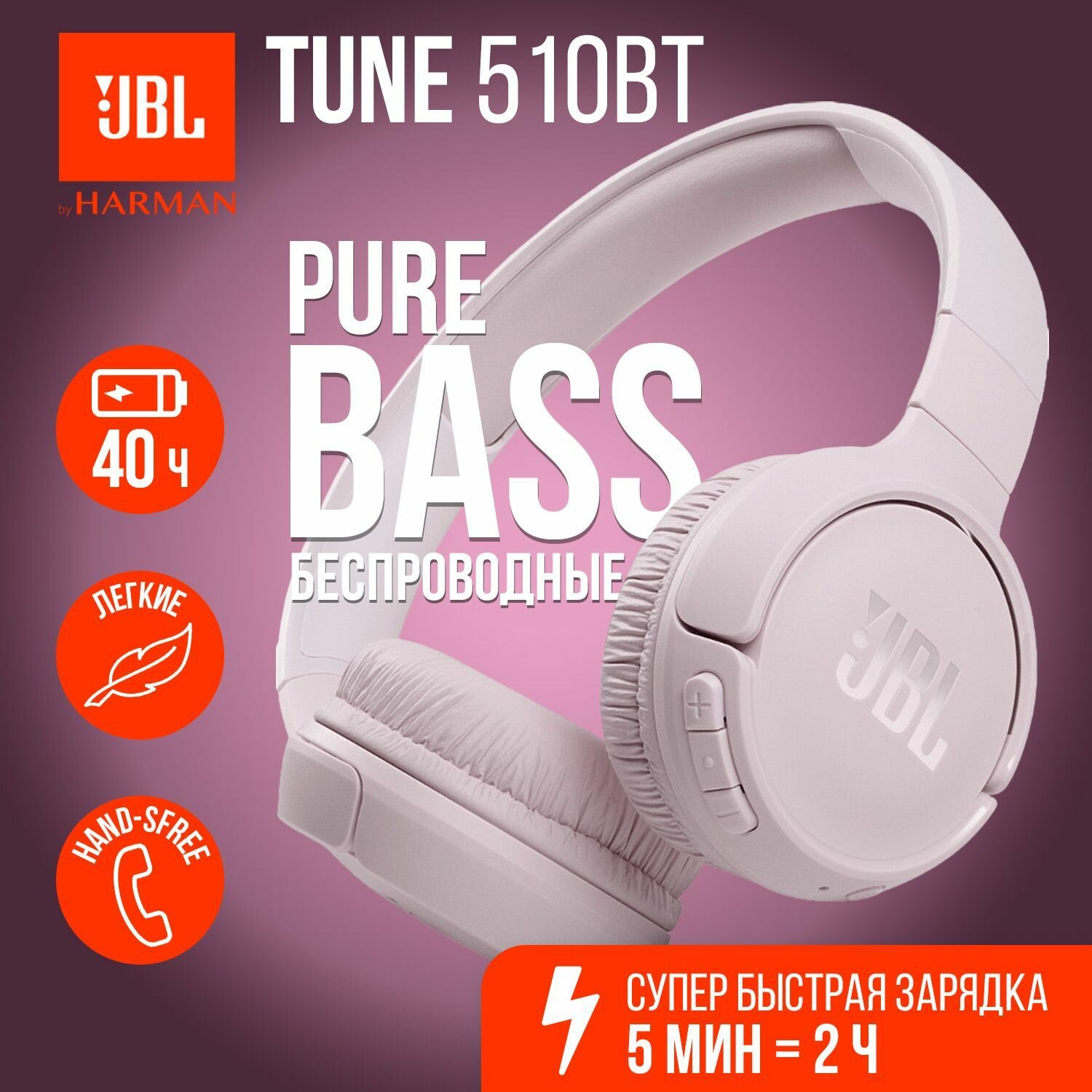 Наушники JBL Tune 510BT, беспроводные, USB Tupe-C, складные, розовые