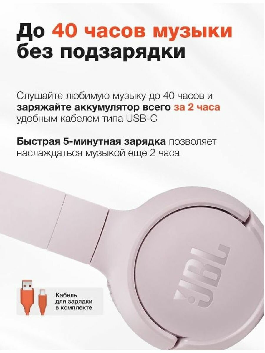 СохранитьБеспроводные наушники JBL Tune 510BT, USB Type-C, розовый интересное: