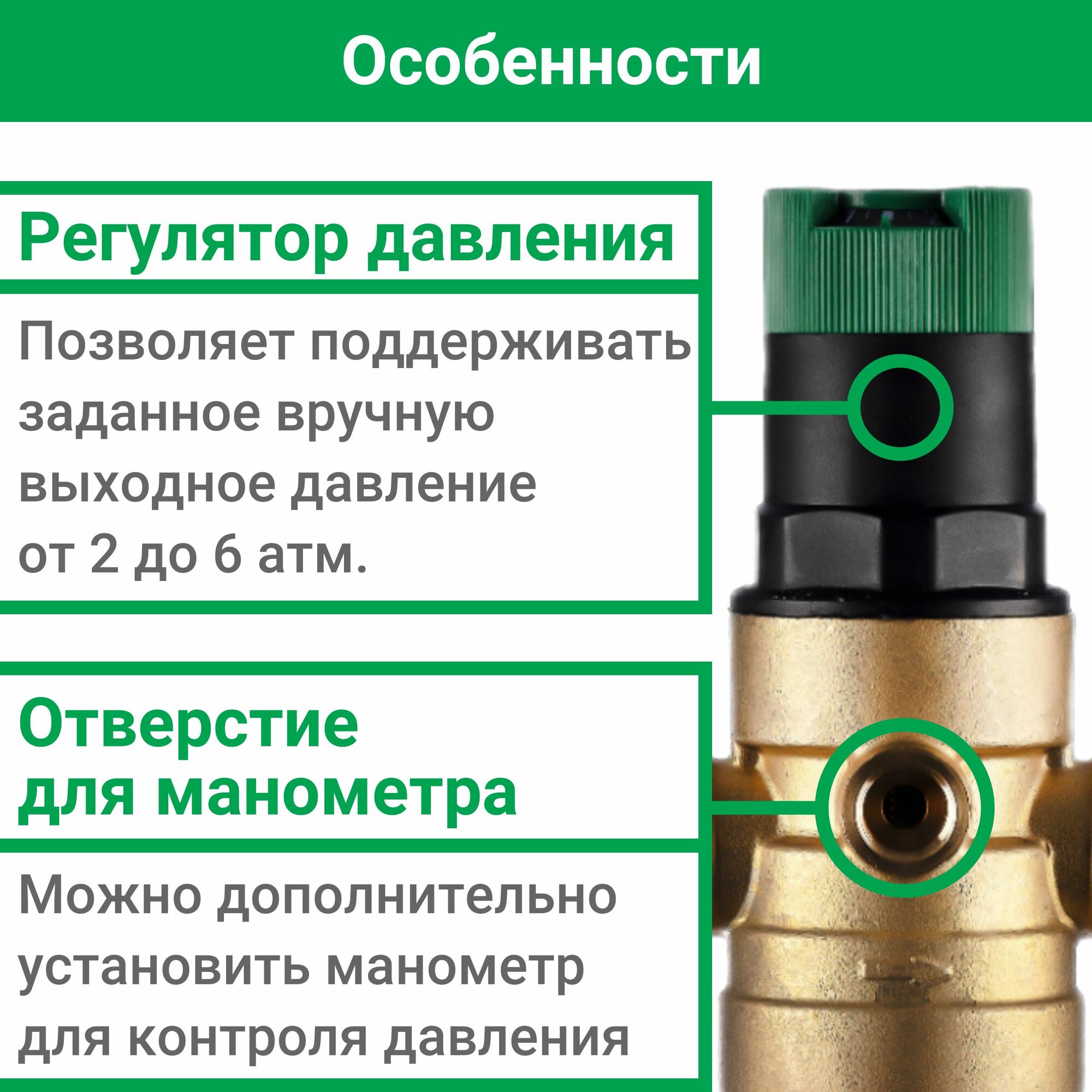 Фильтр 1/2, для холодной воды, с регулятором давления, d52.5 Гейзер Бастион 7508155233 32681