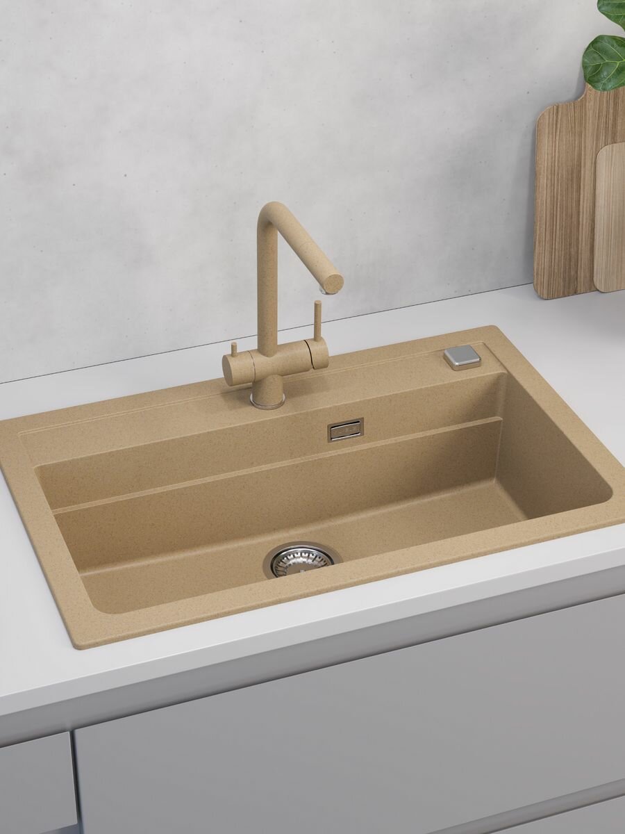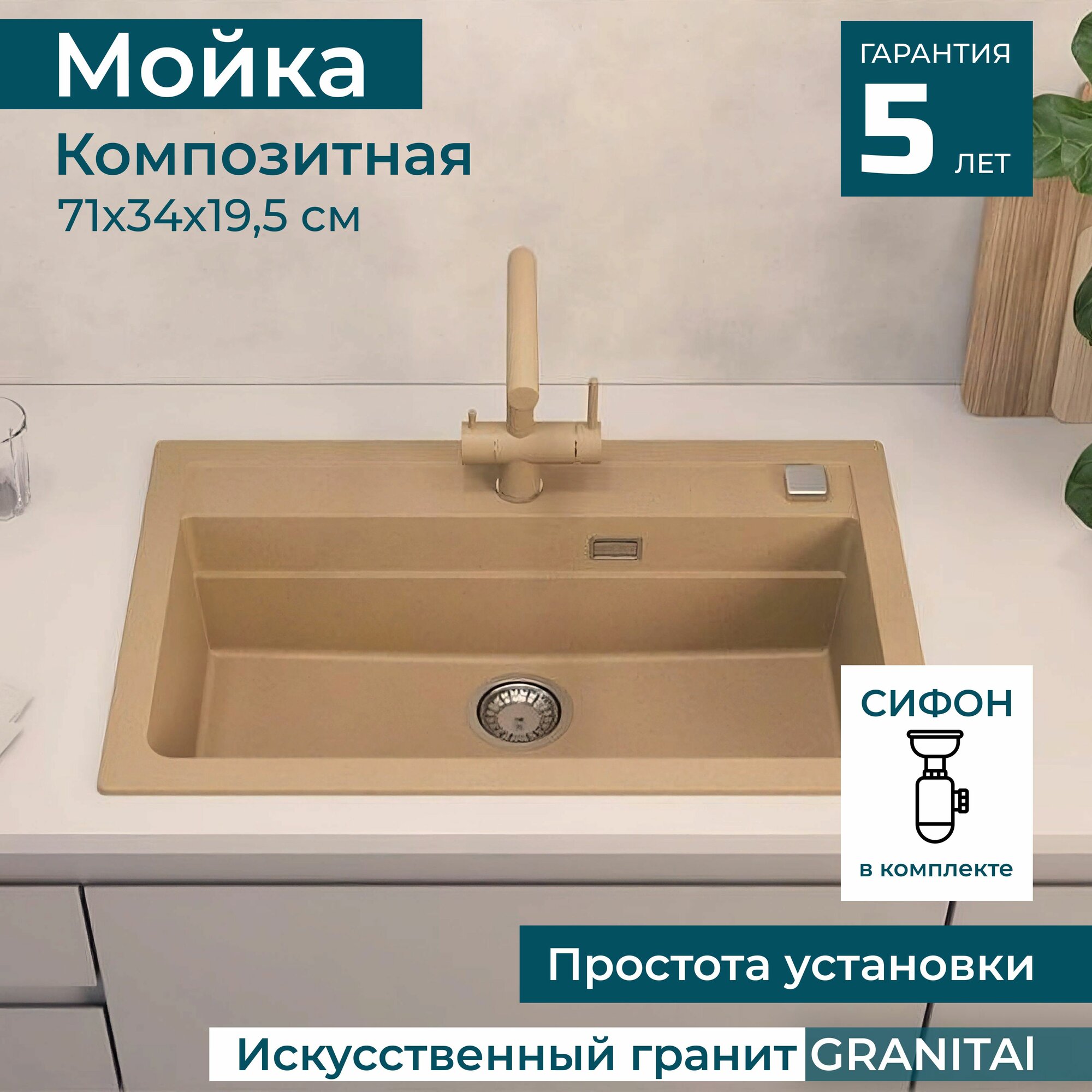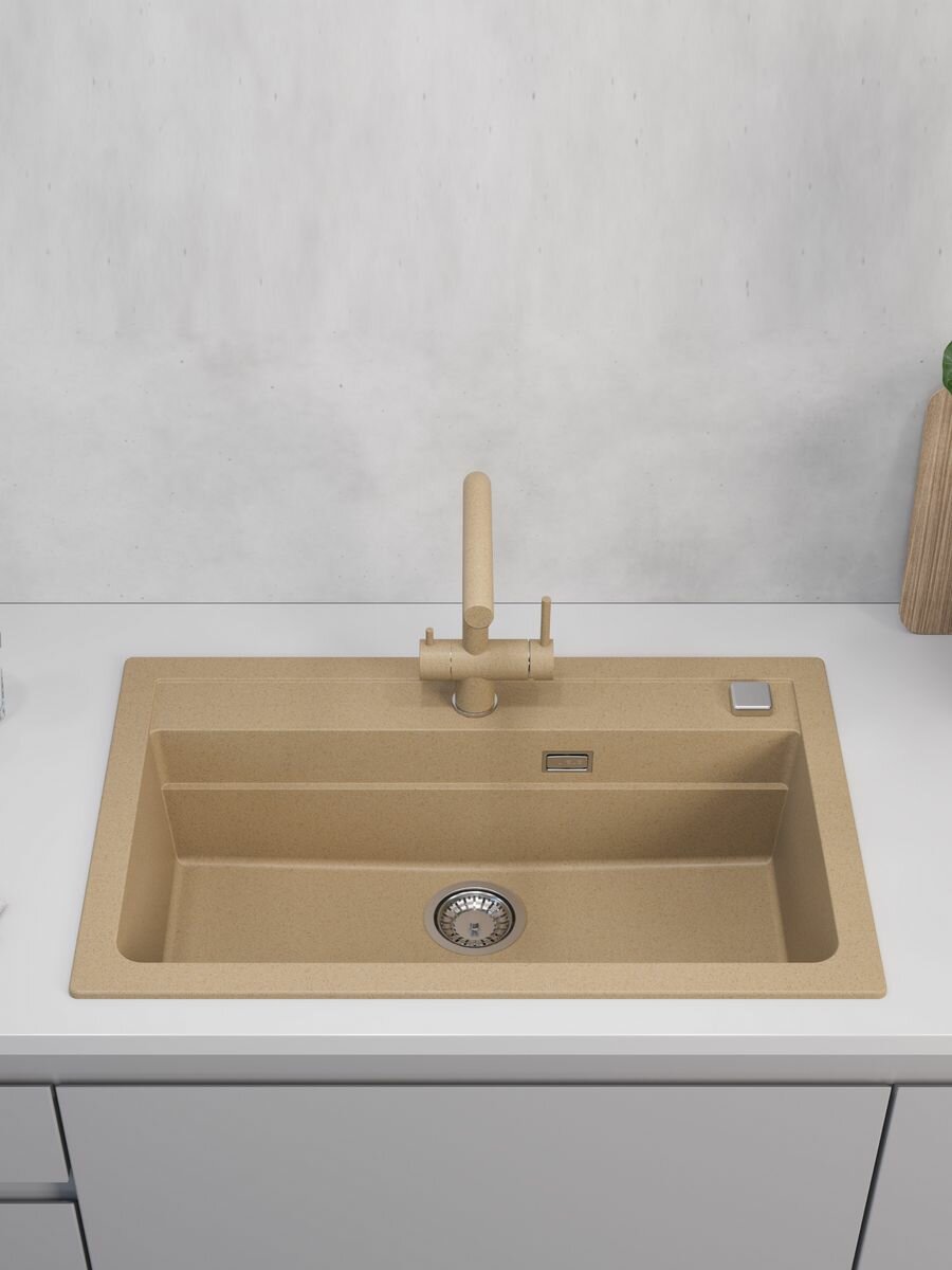 Каменная мойка для кухни врезная на столешницу с сифоном ALVEUS GRANITAL ATROX 40 BEIGE - G55 79 X 50 1X гранит. Цвет бежевый