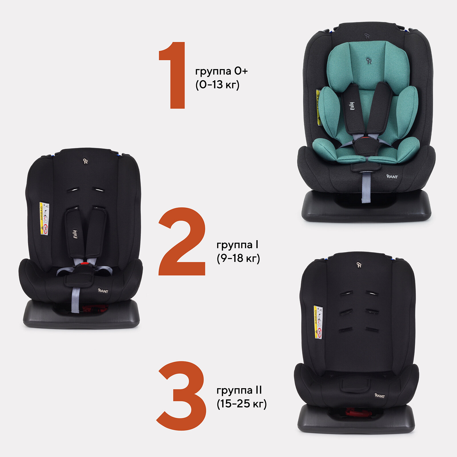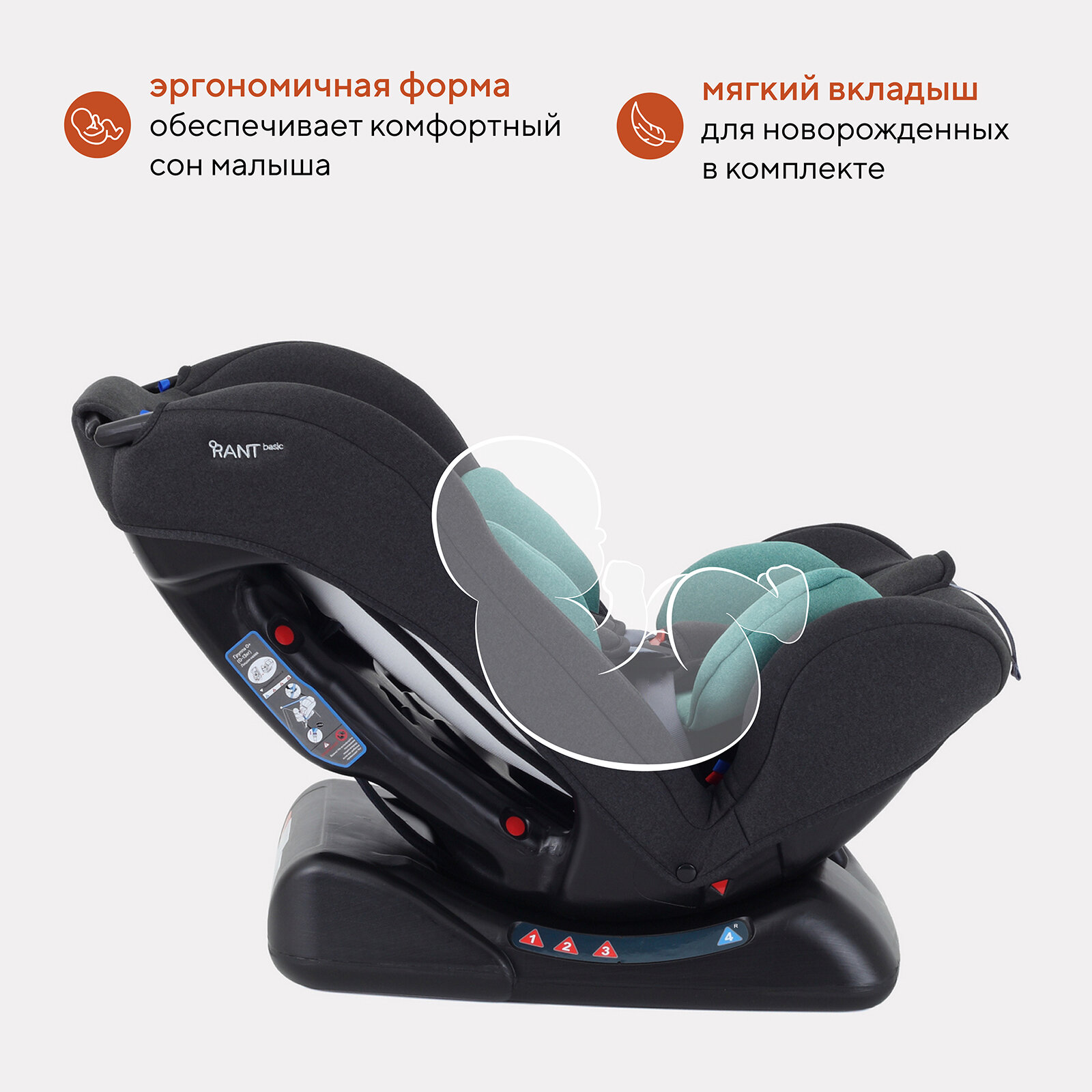 Автокресло детское Rant basic Rally арт. ZY19 группа 0+/1/2 от 0 до 7 лет вес 0-25 кг, Black