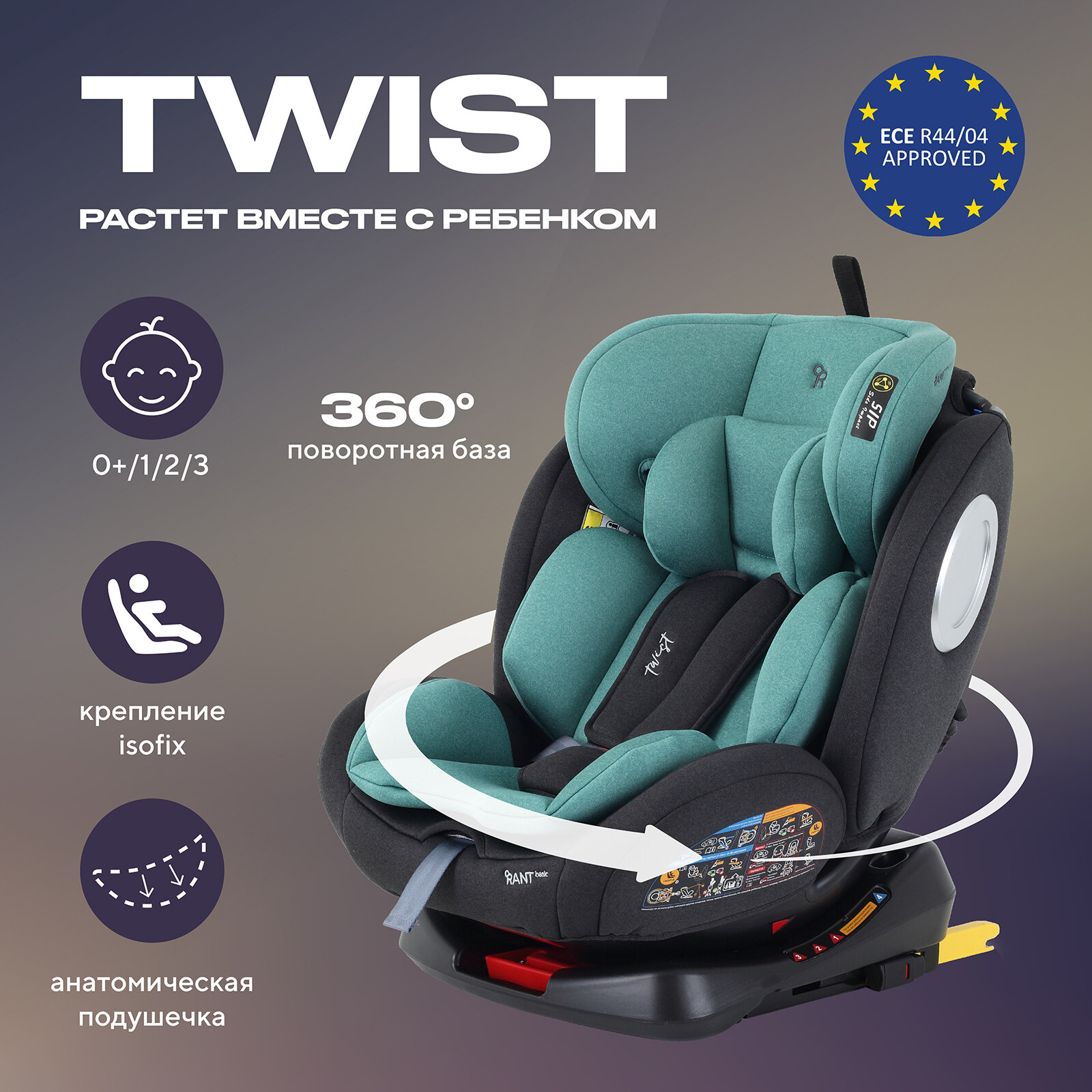 СохранитьАвтокресло детское Rant basic Twist 0-36 изофикс поворотное 360 (mint) интересное: