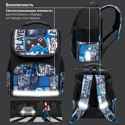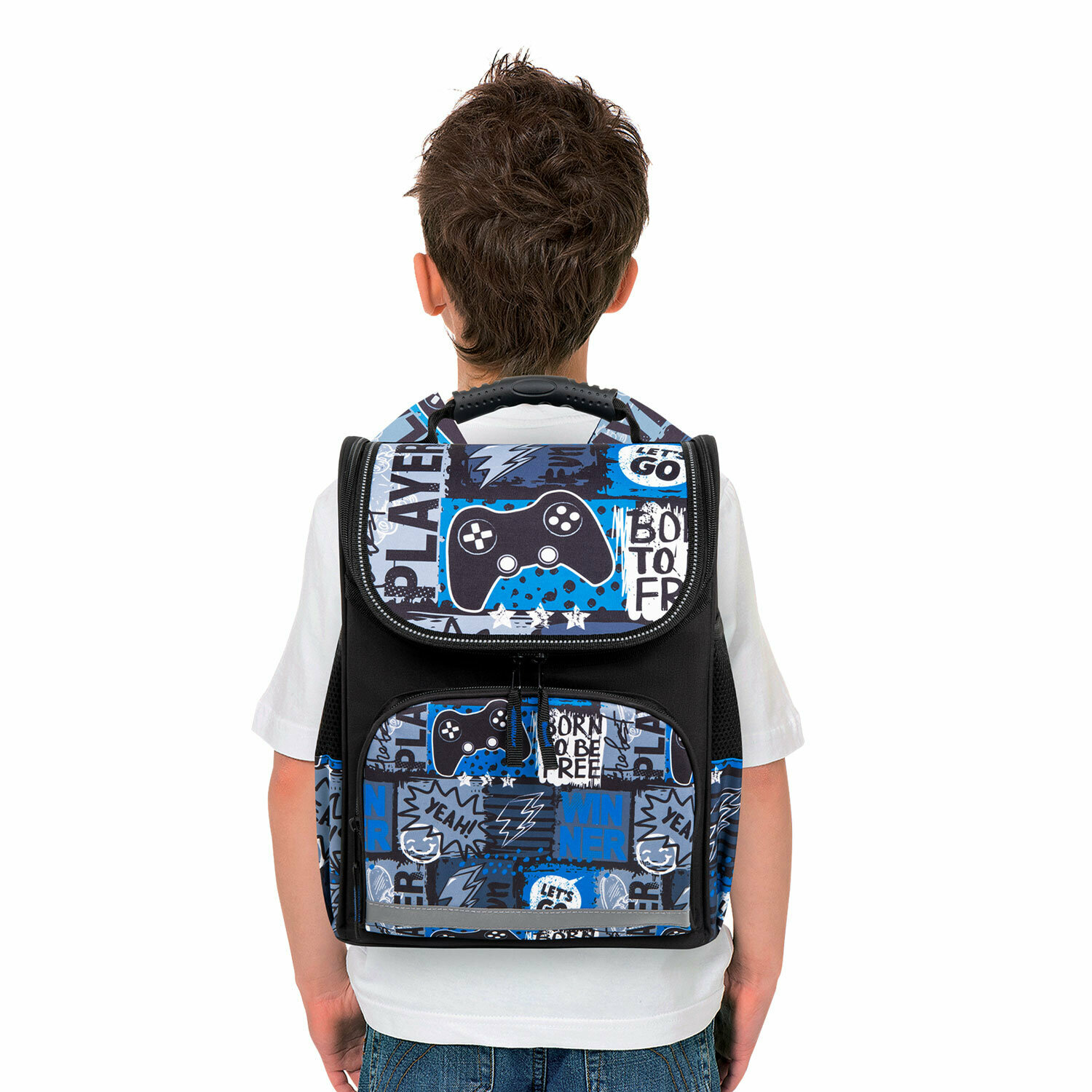 Ранец пифагор BASIC, 1 отделение, 3 кармана, эргономичная спинка, "Game on", 35х28х18 см, 271376
