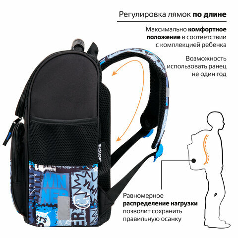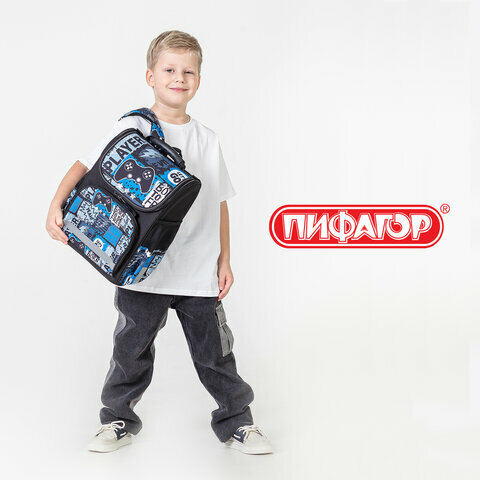 Рюкзак школьный для мальчика, портфель для первоклассника ортопедический, ранец детский в школу с эргономичной спинкой, 1 отделение, 3 кармана, Пифагор Play, 272043