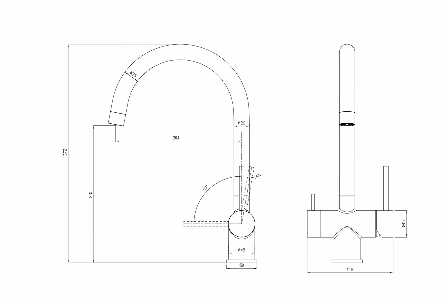 | Длина излива | 204 мм |