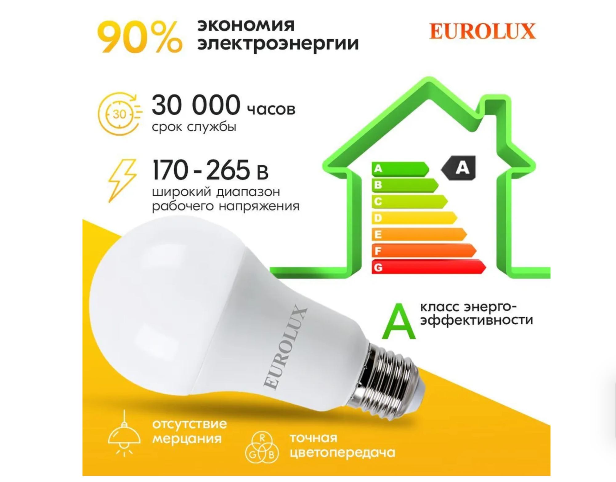 | Эквивалент лампы накаливания | 150 Вт |