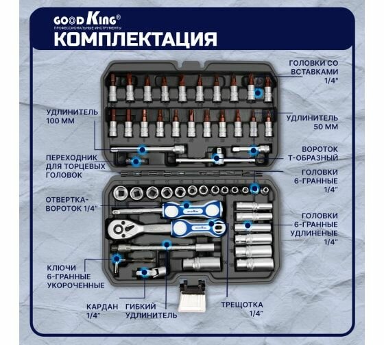 Набор инструментов GOODKING 53 предмета 1/4" трещотка B-10053