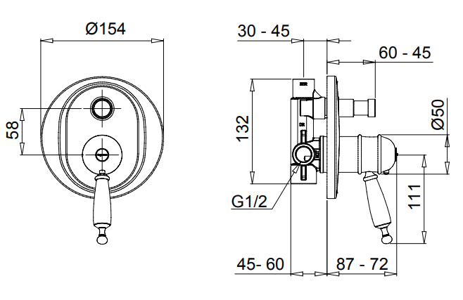 Смеситель для ванны с душем (с внутренней частью) Migliore Oxford 19181 (ML.OXF-6378.BI.DO)