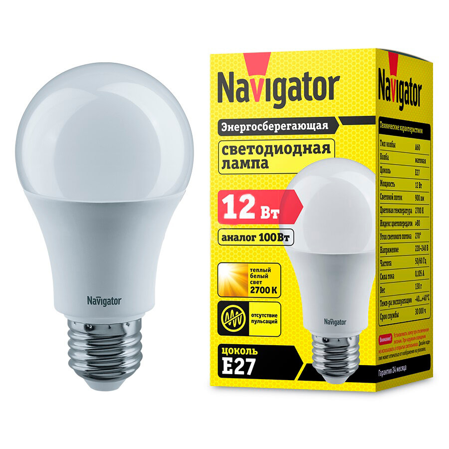 Ниже Вы можете прочитать отзывы на Светодиодная лампа Navigator NLL-A60-12-230-2.7K-E27 Standard, ознакомится с подробными характеристиками, посмотреть интересные обзоры и фотографии на Светодиодная лампа Navigator NLL-A60-12-230-2.7K-E27 Standard.