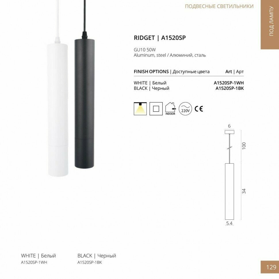 Точечный подвесной светильник Arte Lamp RIDGET A1520SP-1WH