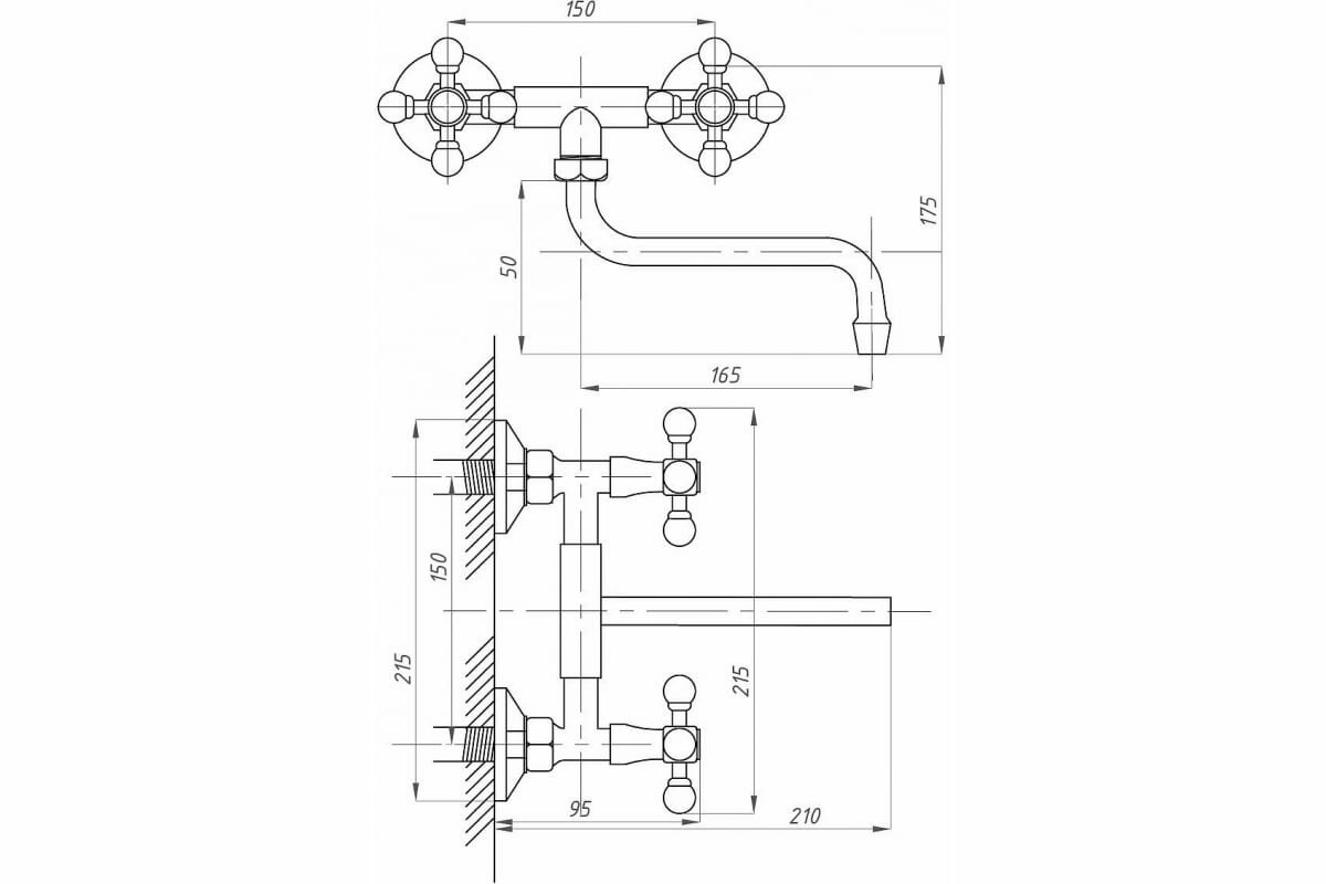 Смеситель для кухни псм-профсан PSM-108-К89 стандарт-б настенный тип см-мдрнр