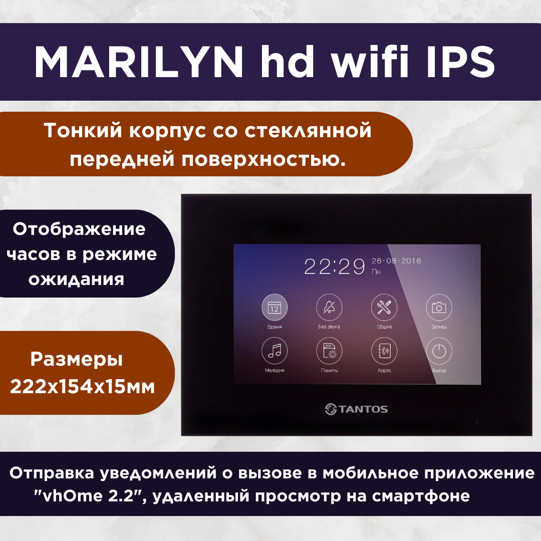 Видеодомофон для квартиры Tantos Marilyn HD Wi-Fi IPS