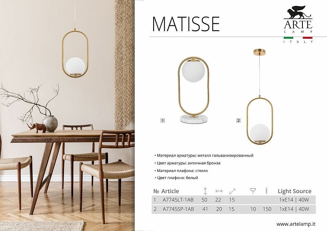 Светильник Arte Lamp MATISSE A7745LT-1AB