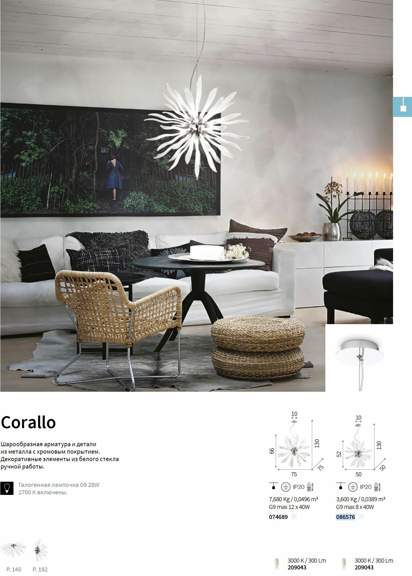Светильник подвесной ideal lux Corallo SP8 D50 макс.8x40Вт G9 IP20 230В Хром/Белый Металл/Стекло Лампы в комплекте 086576.