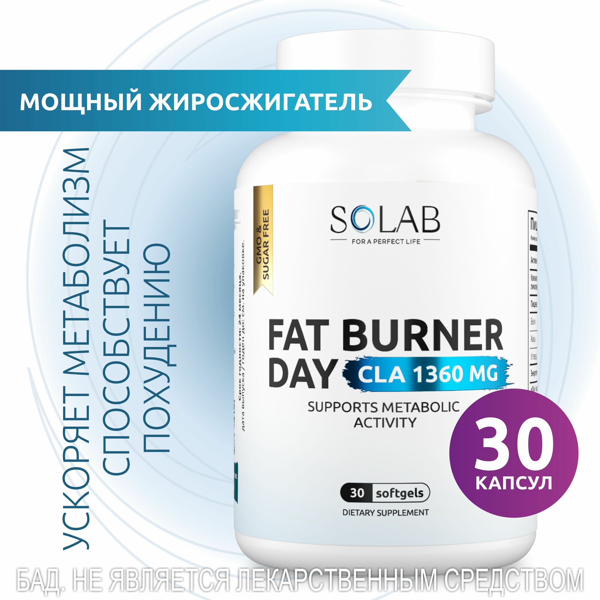 Купить Жиросжигатель FAT BURNER DAY SOLAB cпортивный для похудения CLA 30 капсул