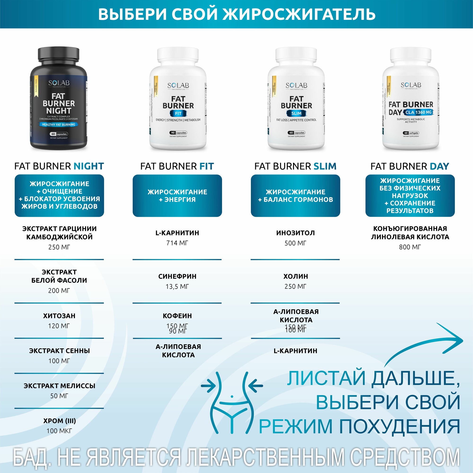 Жиросжигатель FAT BURNER NIGHT SOLAB cпортивный для похудения CLA 60 капсул