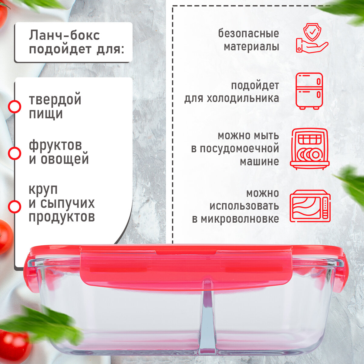 Rgl-230145 контейнер пищевой прямоугольный с разделителем 1500мл