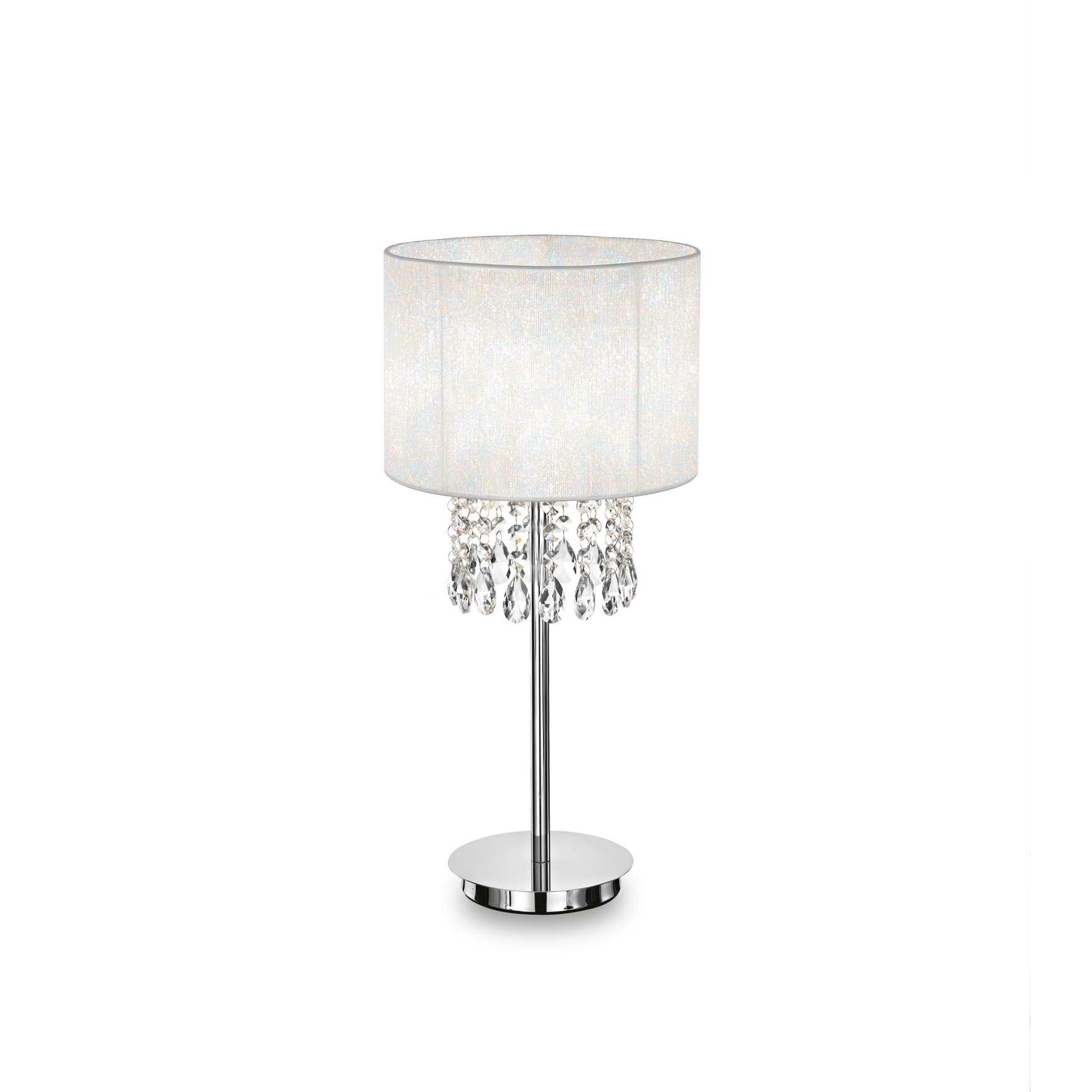 Лампа настольная Ideal Lux Opera TL1 макс.1х60Вт IP20 Е27 230В Хром/Белый/Прозрачный Металл/ПВХ/Хрусталь Выключатель Штепсель Без лампы 068305.