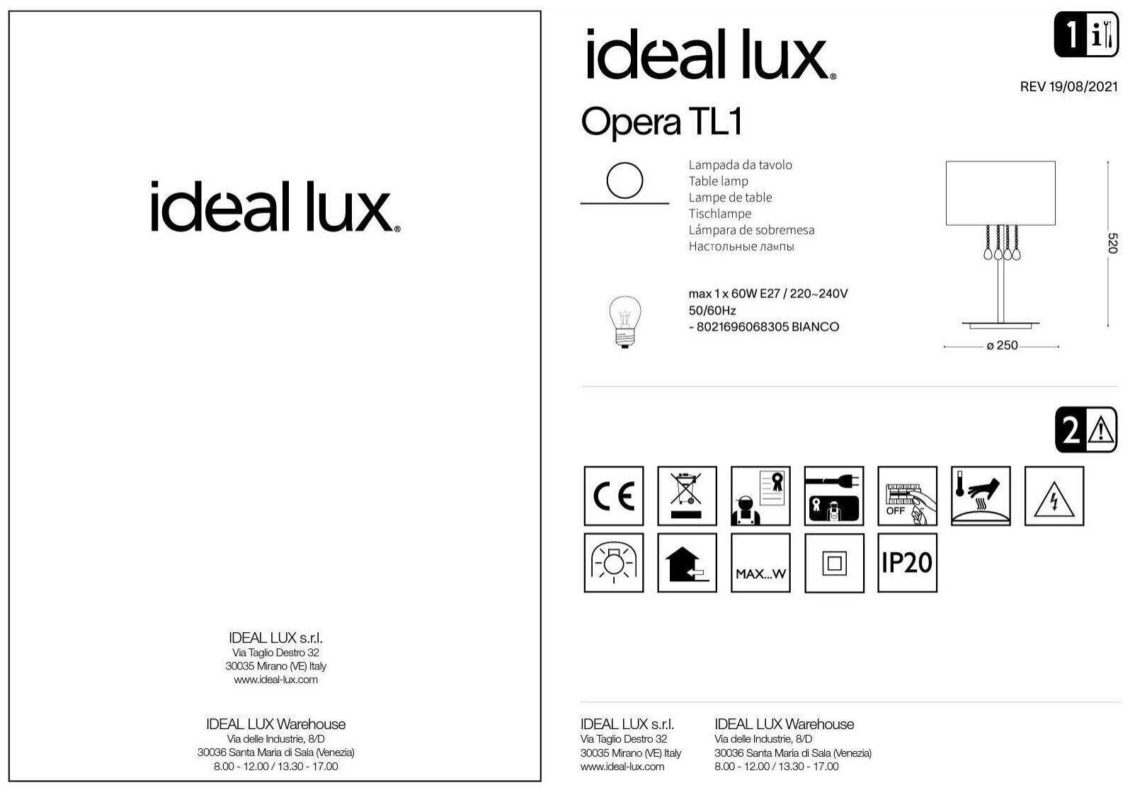Настольная лампа Ideal Lux Opera TL1 Bianco 068305