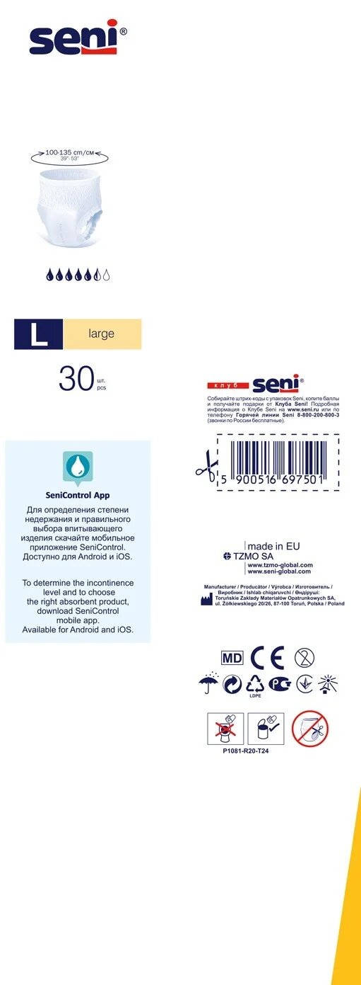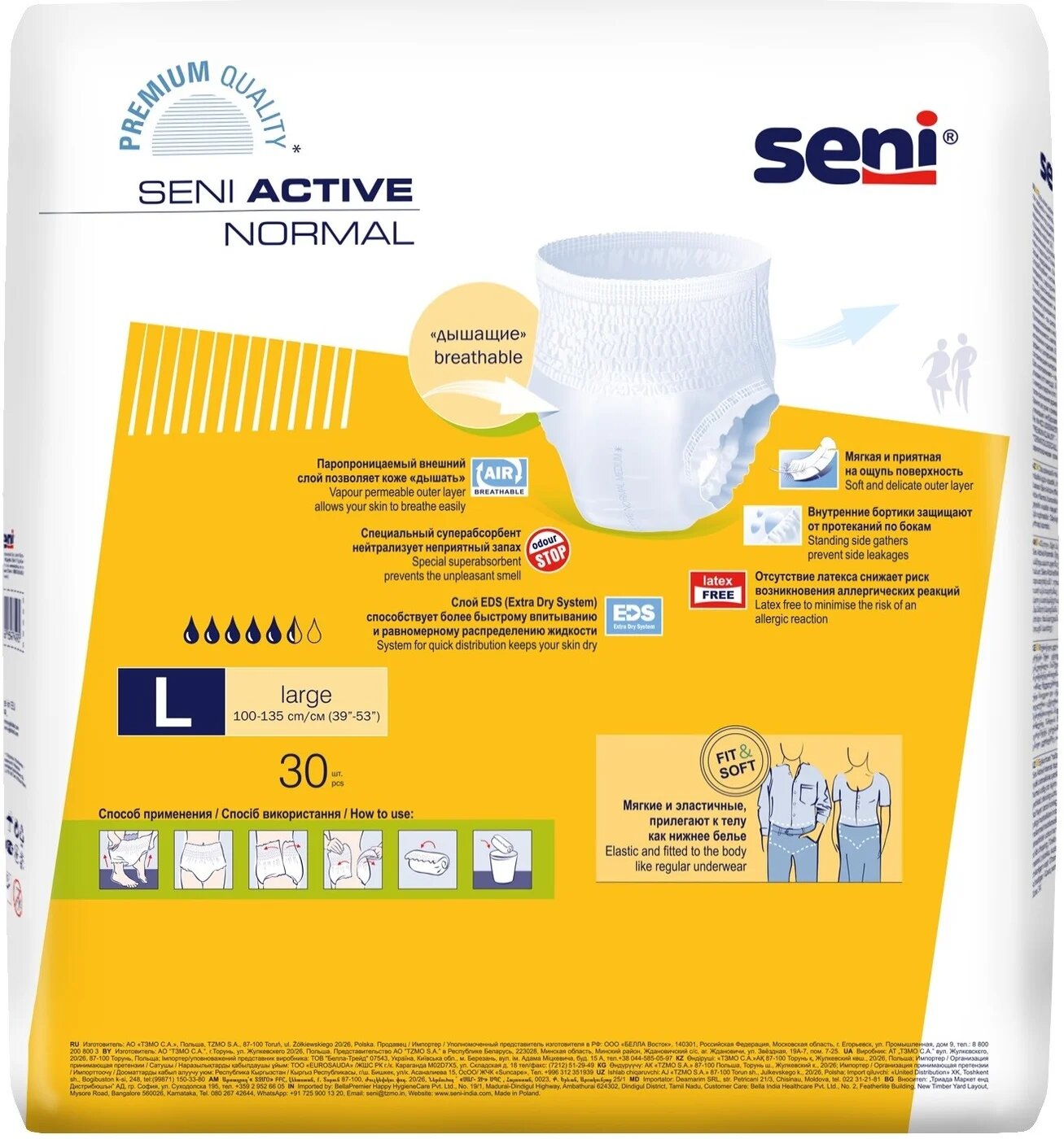 Купить Подгузники-трусы для взрослых SENI ACTIVE NORMAL Large, комплект 30 шт., одноразовые, SE-096-LA30-RU0