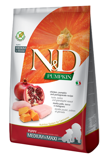 FARMINA DOG N&D GRAIN FREE PUMPKIN PUPPY MEDIUM & MAXI CHICKEN & POMEGRANATE беззерновой для щенков средних и крупных пород с курицей, гранатом и тыквой (12 кг)