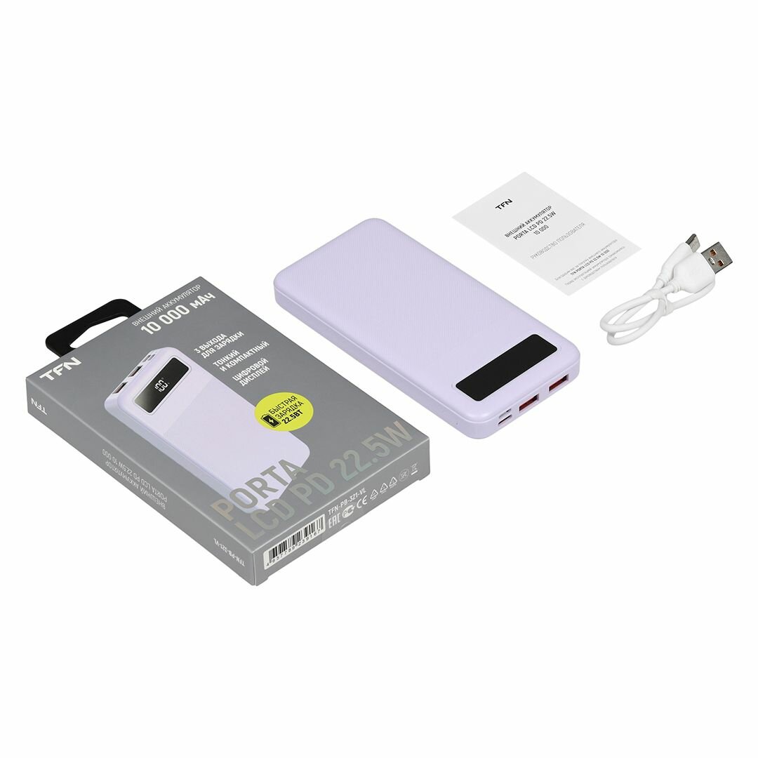 Внешний аккумулятор TFN 10000 mAh, Porta LCD PD, 22.5 W, фиолетовый (TFN-PB-321-VL)