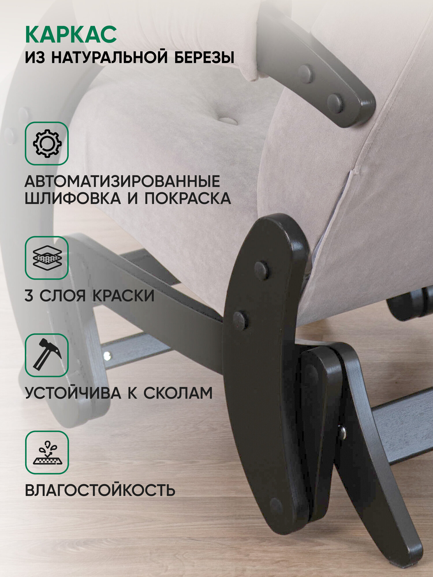 Кресло-качалка для дома и дачи с мятниковым механизм Glider 68 в ткани Микровелюр, цвет серый / молочный дуб