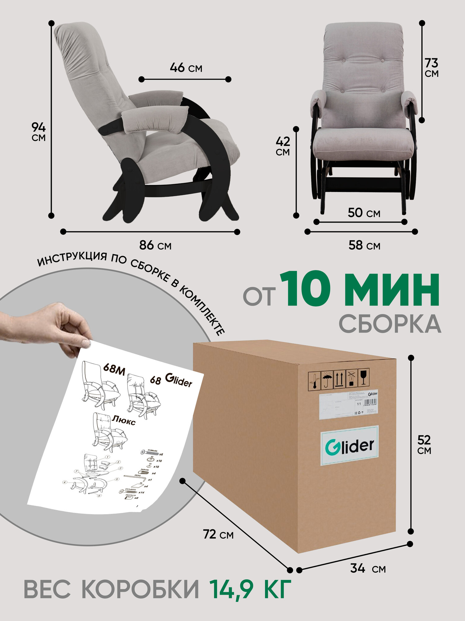Кресло-качалка с мятниковым механизм Glider 68 в ткани Микровелюр, цвет серый