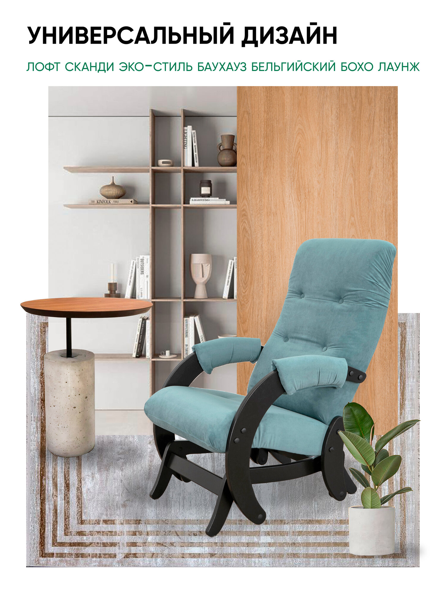 Кресло-качалка с мятниковым механизм Glider 68 в ткани Микровелюр, цвет морской волны / сине-зеленый