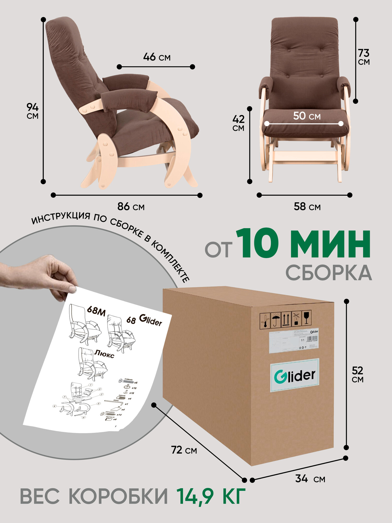 Кресло-качалка с мятниковым механизм Glider 68 в ткани Микровелюр, цвет коричневый / шоколадный