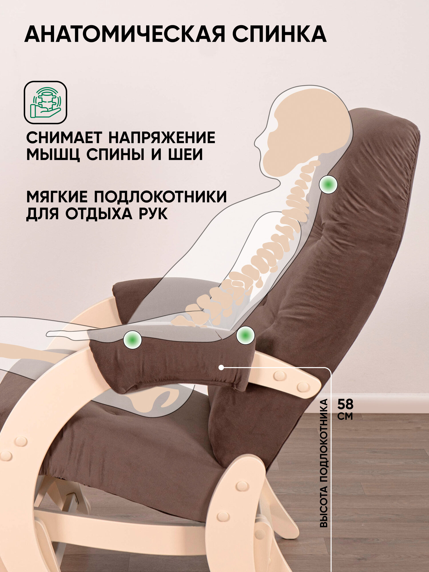 Кресло-качалка для дома и дачи с мятниковым механизм Glider 68 в ткани Микровелюр, цвет коричневый / шоколадный