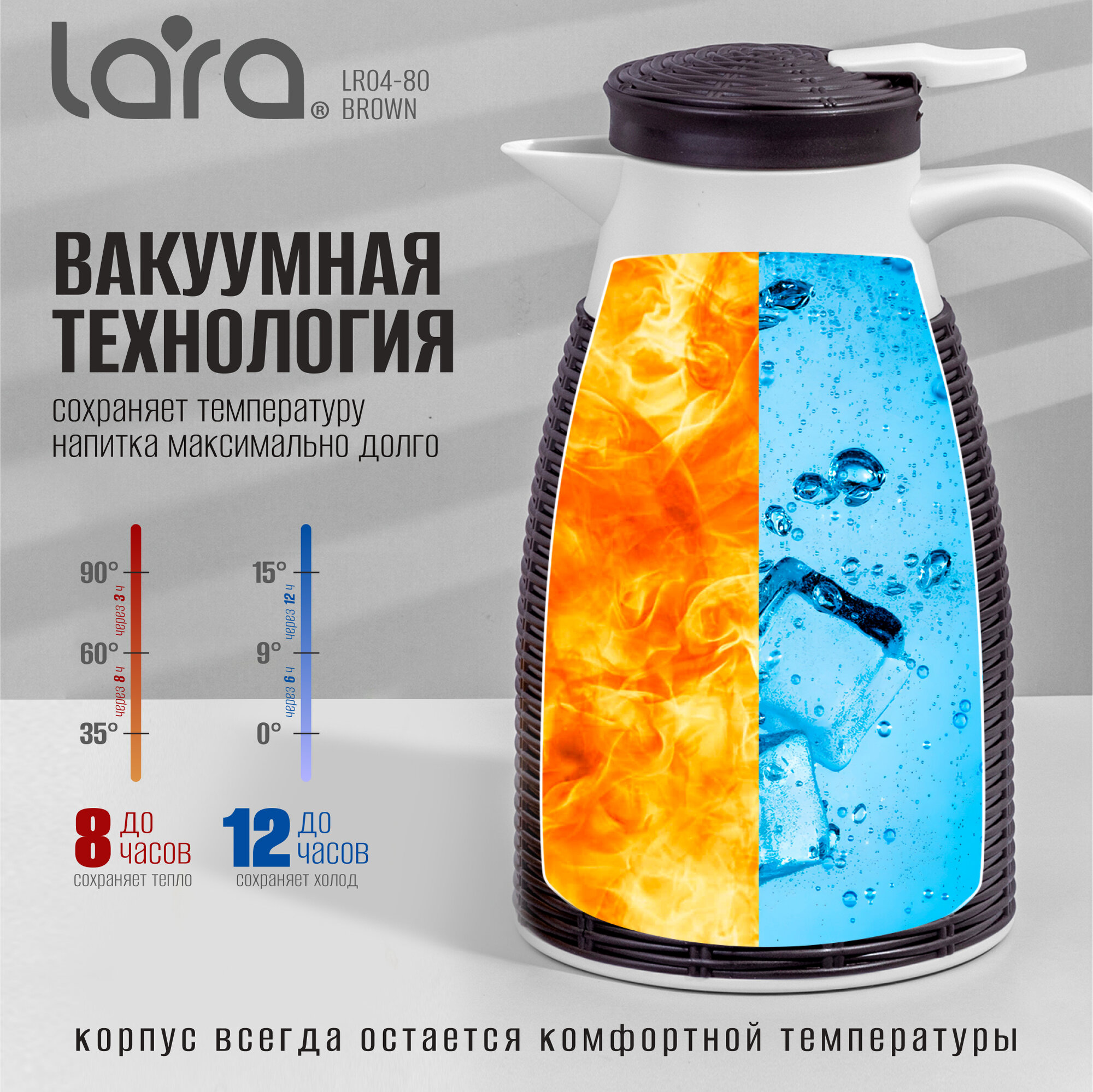 Термокувшин крышка LARA LR04-80, 1 л, коричневый
