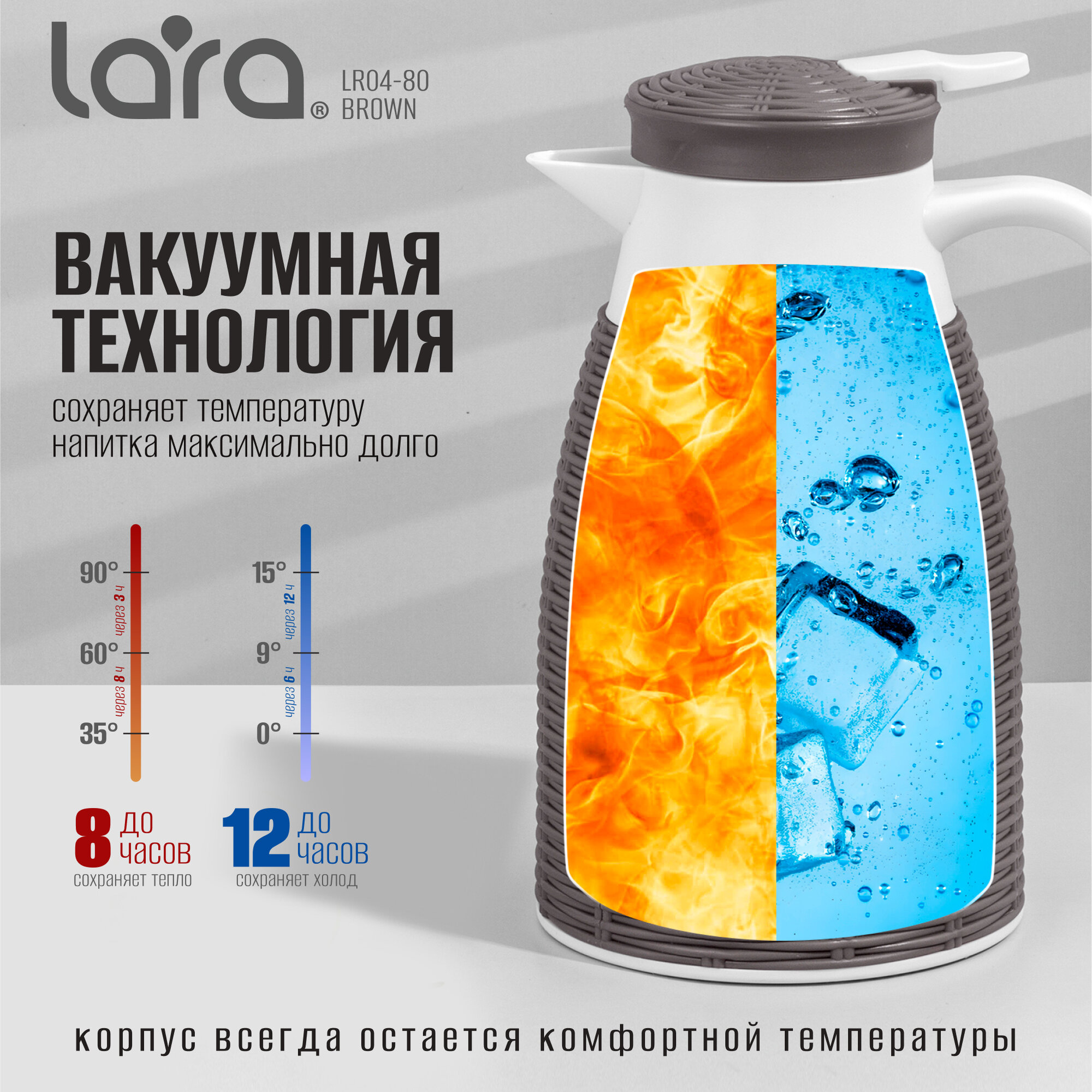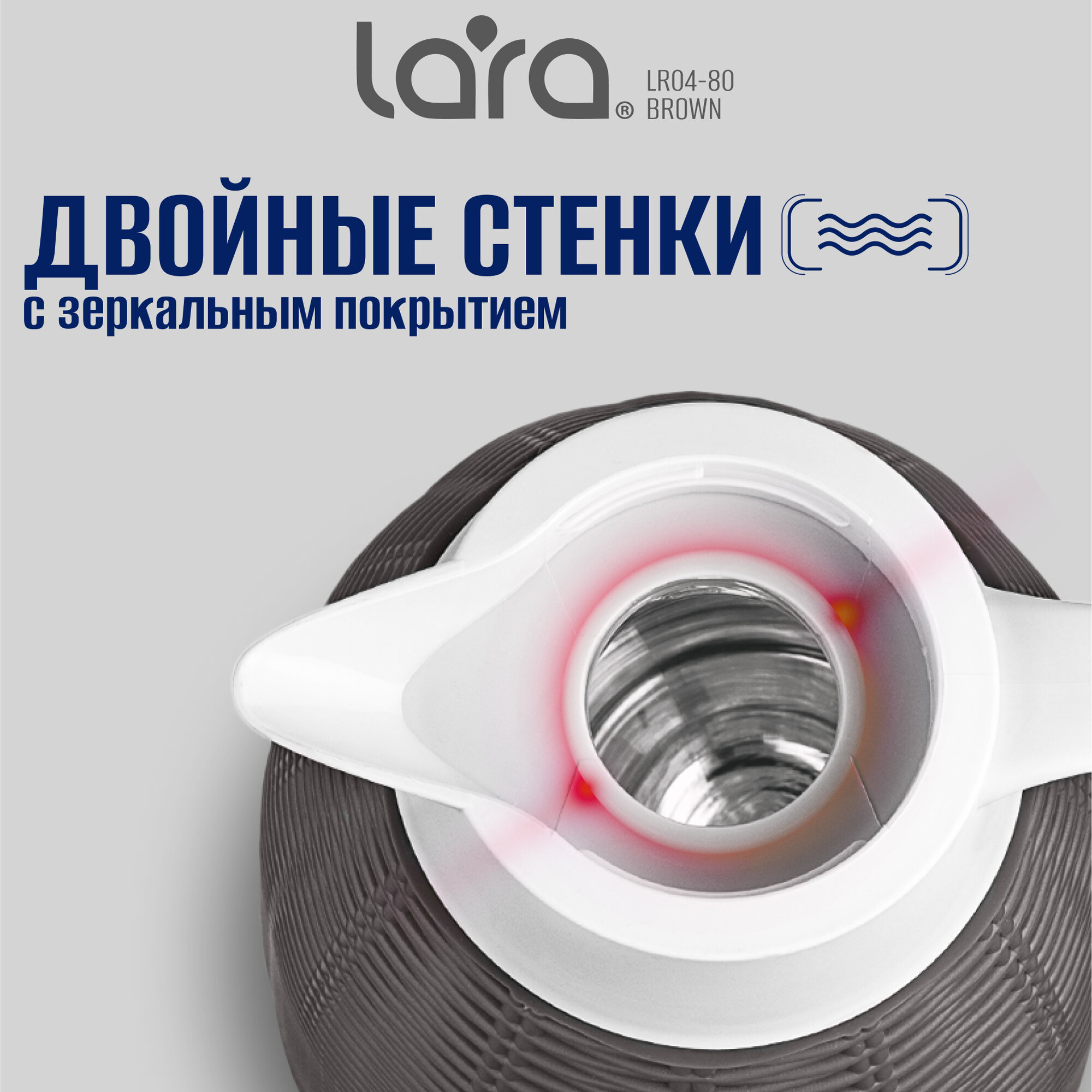 Термокувшин крышка LARA LR04-80, 1 л, коричневый